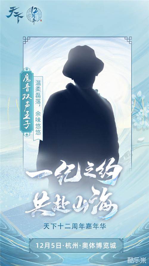 另一位悬念嘉宾的剪影则是正面照。戴着一顶帽子的TA潇洒而立,一缕微光从背后照亮了他的下颏与肩膀,却始终不得见其真容。对此,海报给予TA的评价是“温柔磊落,余味悠悠”,似乎与外在的形象有着奇异的反差萌点。而官方更为TA送上了“魔音双生王子”的美誉,在双重评语buff的加持下,即将到来的嘉年华无疑更加令人激动啦!12月5日当天下午2点起,嘉宾们就将抵达活动现场为大家送上精彩的表演,赶紧参与双微、论坛、社群等官方渠道活动一起赢嘉年华门票吧!