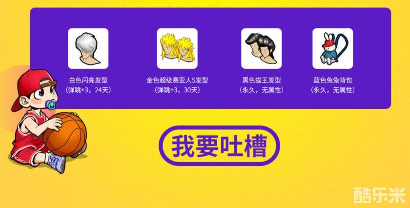 一、被评定为“常规吐槽”的玩家即可获得白色闪亮发型(弹跳+3,24天)一个。