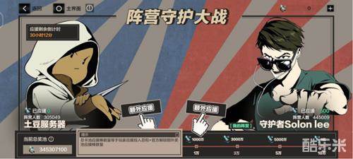 在11月22日12:00-11月25日24:00期间,阵营守护大战开启!玩家可通过竞猜本次版本更新是否炸服来获得不同程度的奖励,参与人数越多,奖励越多,最高甚至可解锁价值一亿元黑卡奖励!除此以外,在游戏内购买应援棒,并在游戏内活动界面应援自己支持的阵营。购买【阵营选择应援礼包】,即可获得【感谢应援】头像。活动结束后,如果是土豆服务器阵营获胜,胜利方指挥官可获得黑卡和头像【碧玉绅士】奖励;如果是守护者SolonLee阵营获胜,胜利方可获得黑卡及头像框【钻石之心】奖励。