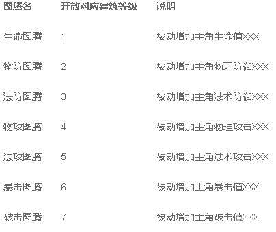 帮派等级2级可自动开放帮派图腾功能,帮派图腾有建筑等级概念,初始1级,最高10级,升级需帮主或副帮主消耗帮派财富进行操作,建筑等级不可超过帮派等级,提升建筑等级可开放新的图腾类型和提高每种图腾等级上限;