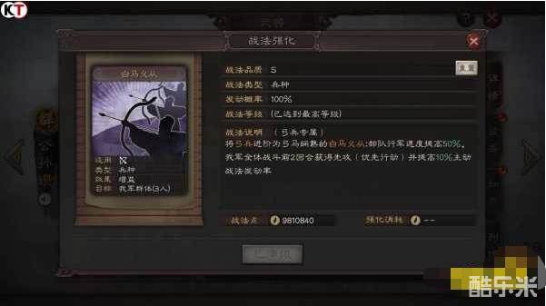 《三国志・战略版》中白马义从由弓兵进阶,为公孙瓒的自带和传承战法。