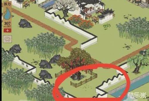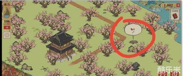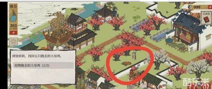 这里也有一个,但是没想到开了宝箱就消失了,找鸡找宝箱的同时可以点点店铺、金鱼池、小摊、以及空的田地(需要种植生产,生产完成变成上图祈愿仙树,点一下就可)获取财见贴。