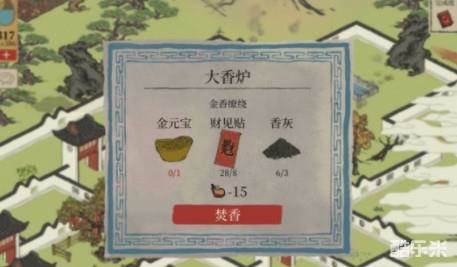 大香炉:金元宝1、财见贴8、香灰3、体力-15。