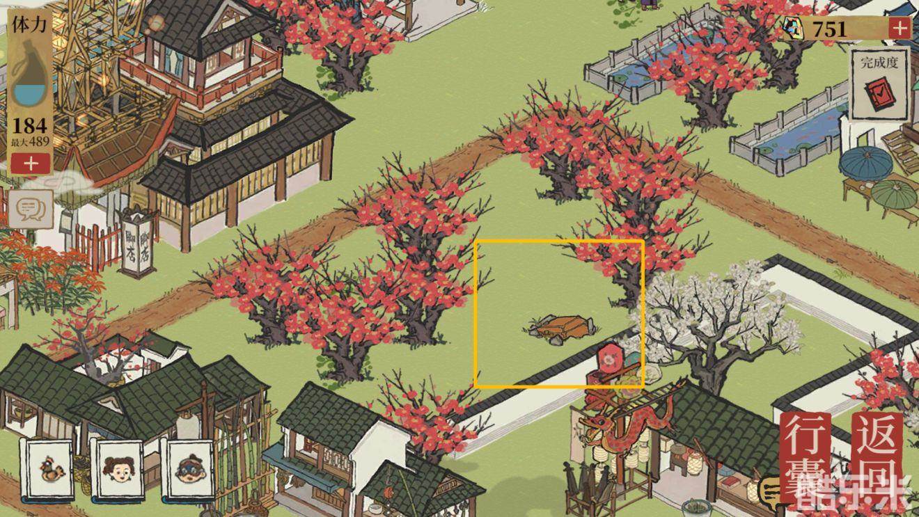沿途的商铺都点点,金鱼池有铜钱拿,农田种见财树可以拿见财贴。