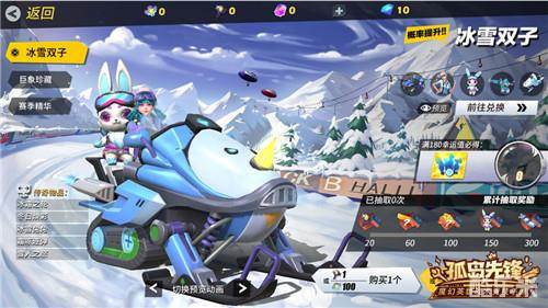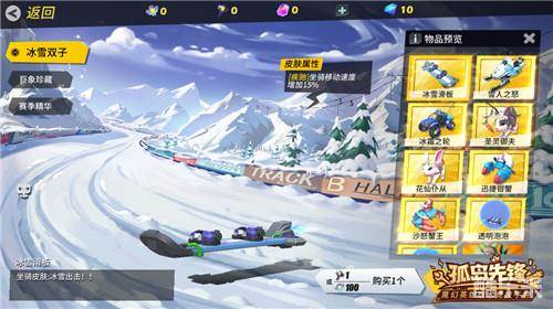 冰雪双子宝箱中物资十分丰富,仅全新坐骑就包括冰雪滑板、雪人之怒、冰霜之轮三种,坐骑体积与载动能力依次提升,其中冰霜之轮不仅可以供双人搭乘,还拥有全新的坐骑展示技能,按下技能按钮将展示一段潇洒的坐骑动画。