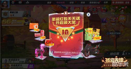 十一月即将离去,节日多多的十二月已在招手。从12月1日至12月31日,《孤岛先锋》将开启“圣诞红包天天送”活动,每日上线即可领取,开启后将随机获得点券、永久英雄、坐骑皮肤、橙色套装等丰厚大奖,更有百元京东卡、圣诞节马克杯、可乐、雪碧、薯片等豪华实体大奖,美味实惠送不停!