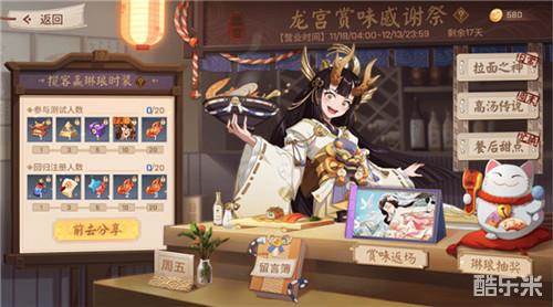而琰萝额头,还有一对尖角弯曲伸出,仿佛捧着她束冠的明珠,身后则垂下一条金色龙尾,看上去整个就是龙宫出来体验生活的小公主。此外,琰萝手中还捧着一碗香气弥漫的海鲜拉面,是来自神龙大厨的手艺。大厨双目炯炯,职业装也十分干练,尤其是他手中的蟹钳镰刀,更是让人看得不禁吞口水!