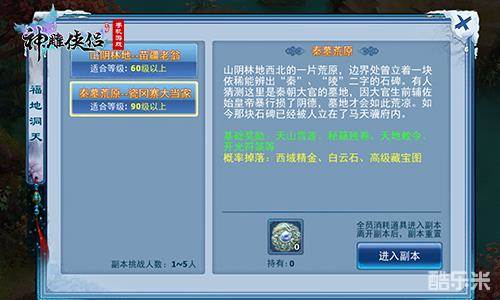 《神雕侠侣》手游新资料片“江湖秘藏”还将推出新副本福地洞天,大侠们可单人或组队进入。进入福地洞天无需固定时间,只要向福地洞天密使交付所需道具即可。大侠们可以根据自己的安排,选择合适的时间。本次福地洞天开放60级难度副本“山阴林地”与90级难度副本“秦墓荒原”,后续还将开放多处宝地,敬请期待哦!