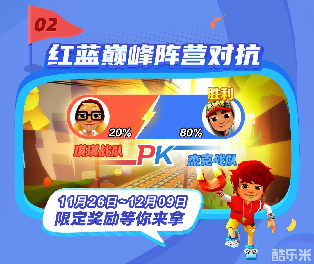除了跑酷之外,想来一场紧张刺激的阵营对抗么?在这个7周年庆典里,杰克与琪琪将代表不同的阵营招兵买马进行对战!共同夺取神秘的周年礼盒!更有限定滑板相赠哟!这究竟是一场关乎荣耀的战斗,还是对于珍奇宝物的追逐?结局,由你书写!