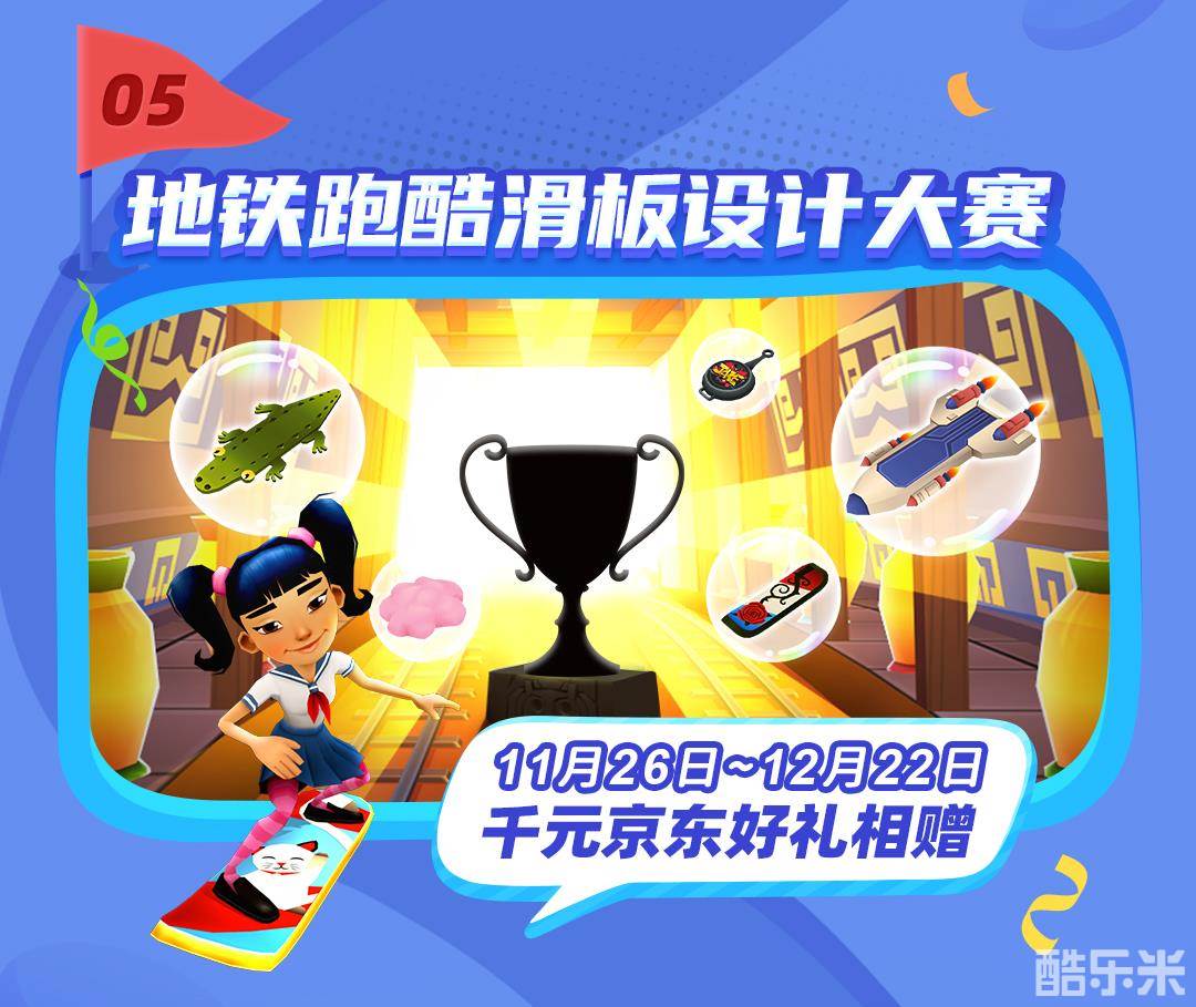 《地铁跑酷》首届滑板设计大赛即将开启!放飞想象,绘制属于你心中的周年滑板!技能,造型,配色,统统你说了算!你出创意,剩下的我们来帮你!