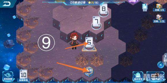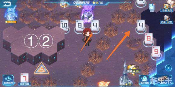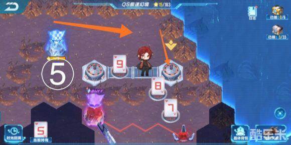 第七步:启动绿色升降装置,然后卡牌与黑桃6交换,道路会通畅,随后挑战箭头关卡。