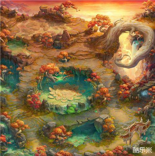 新地图“平顶山”以红、黄、绿为主色调,致力通过细致的美术刻画,为大家呈现出符合想象的仙家圣地景观。场景中耀眼霞光映满天,枫树流丹掩峻岭,古树飞瀑、幽潭石莲,宛如一幅古意盎然的国风画卷。