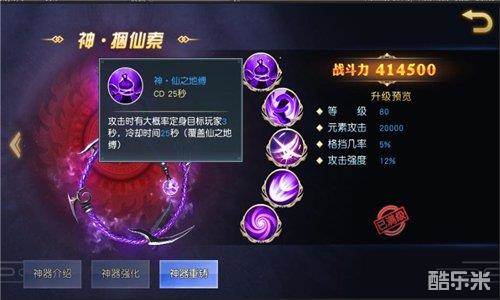 作为角色化神后才能开启的进阶任务,神器重铸后捆仙索的各项加成、技能效果都得到大幅提升。首先就是这件神器的控制能力,捆仙索的束缚能力极强,在对敌时往往可以起到先手控制的妙用。“神·仙之地缚”会在攻击时以较大概率定身目标玩家3秒,在PVP种很可能起到致胜奇效。