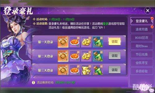 登录豪礼来相送,精彩活动任你享!为了庆祝感恩节到来,11月26日起,《太古神王》上线感恩登录活动,在活动期间登录的神王大人都可以获得登录礼包,连续登录更有绑元、经验药水等海量资源赠送,千万不要错过!