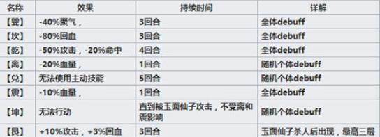 开局的第一种debuff会在【坤】、【兑】、【巽】中随机选择