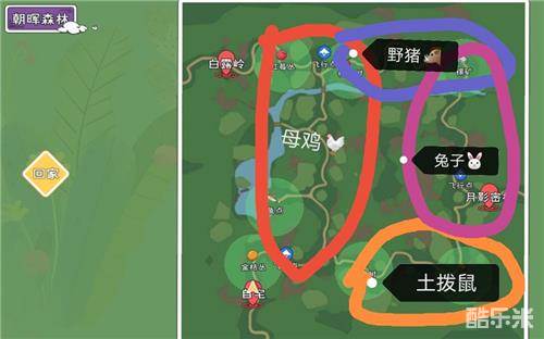 《小森生活》朝晖森林资源分布图 隐藏动物虫点