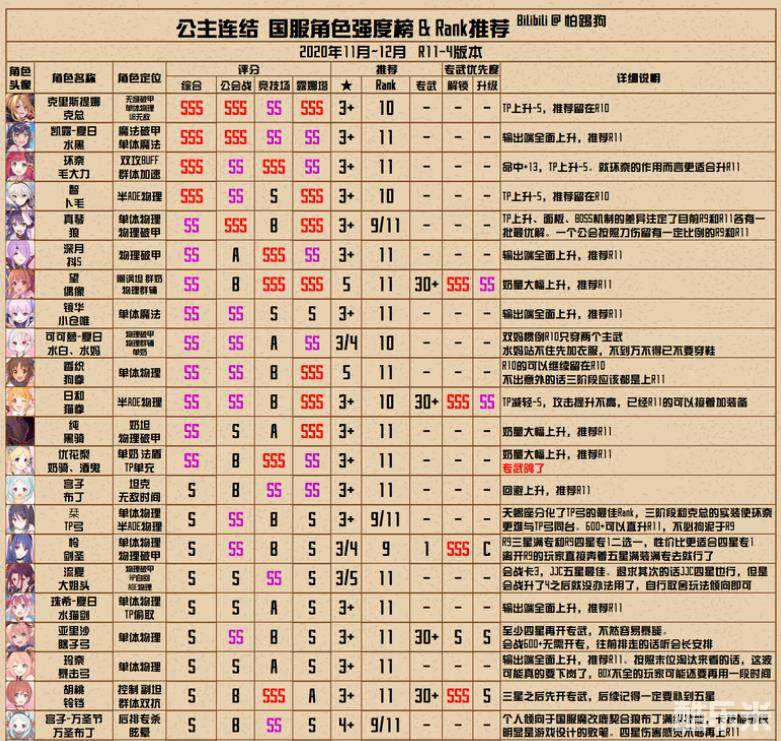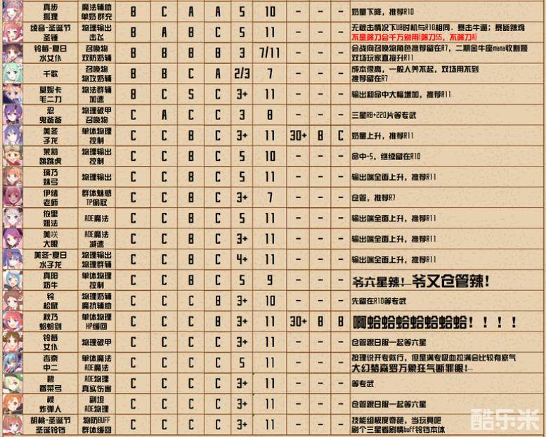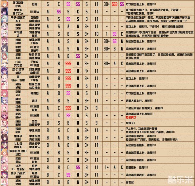 29、流夏(大姐头):会战卡3,竞技场四星能用五星最佳,推荐R11。从角色面板数值上直接让玩家自行分化玩法,PCR第二大设计败笔