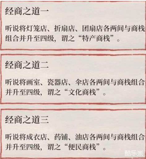 游戏描述:三种商铺各两间与商栈组合并升至4级可解锁特色商栈