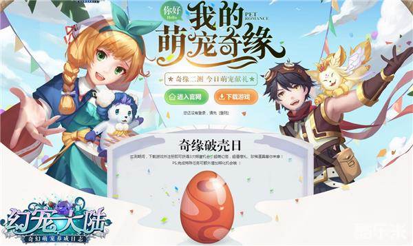 终于等到你,《幻宠大陆》手游今日奇缘开测,通往异世界的大门已经为各位冒险者敞开。为了迎接大家的到来,大陆居民们特别准备了丰厚的见面礼——奇缘蛋。孵化即可随机获得专属称号、钻石、符文箱等珍稀道具,完成任务还可获得更多奇缘蛋!此外,《幻宠大陆》游戏内及官方微信、微博,多重福利邀你共同见证奇缘。