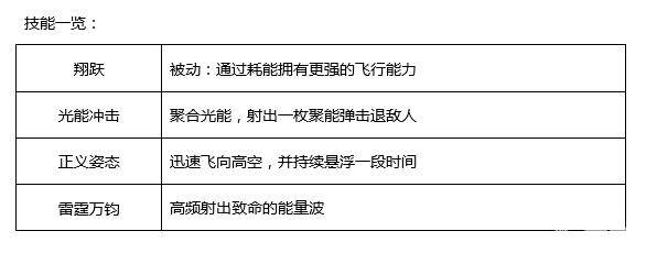 正义姿态:菲亚利用喷射装置快速飞向高空,并悬浮一段时间,这是一个三维空间的切入技能,浮空后可以通过方向键调整自身位置。再次点击技能按钮可以降落到地面。建议绕后再使用,不然很容易成为敌方的火力集中点。