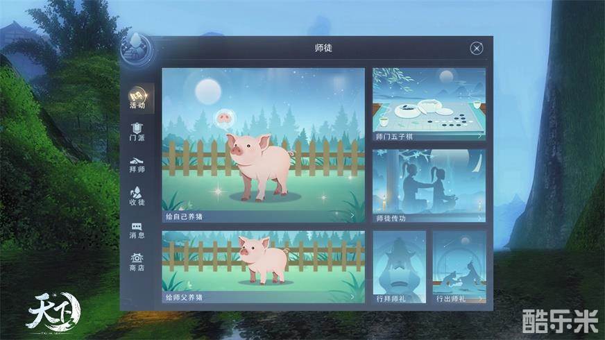 三大全新师徒互动玩法也已全面开启!传功、养猪、五子棋,每日和师门其他玩家轻松互动就能边玩边赚“师门同心”&“传道授业”声望,更可前往指定NPC处凭声望兑换珍稀道具等惊喜好礼。待双方结成师徒关系1个月后,完成出师任务时还将同时获赠一件专属时装“云际星辉”以作留念哦!只要少侠出师后选择不解除关系,每天也都可以参与日常师门互动继续赚师徒奖励!赶紧登录游戏看看你匹配到最有“缘”的师父or徒弟究竟是谁吧,崭新大荒之旅TA在等你一起!