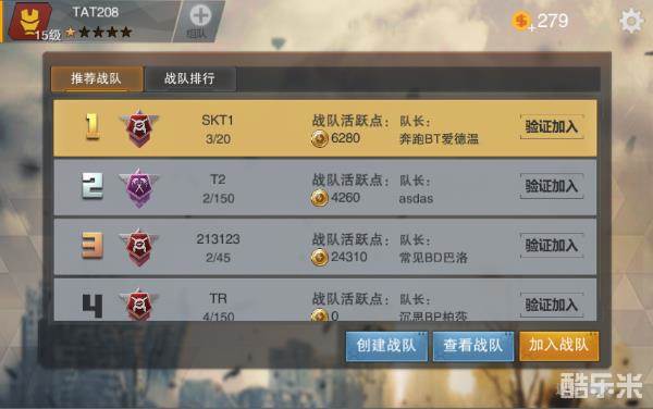 点击战队界面查看当前存在的战队,也可以自己创建战队,不论是哪一种,都需要达到LV7。