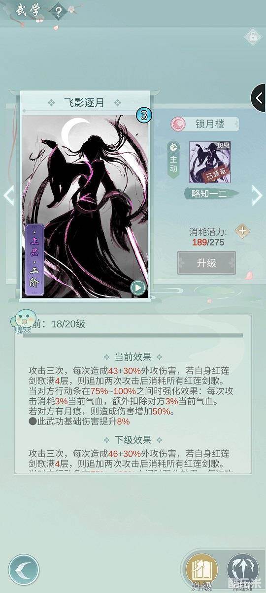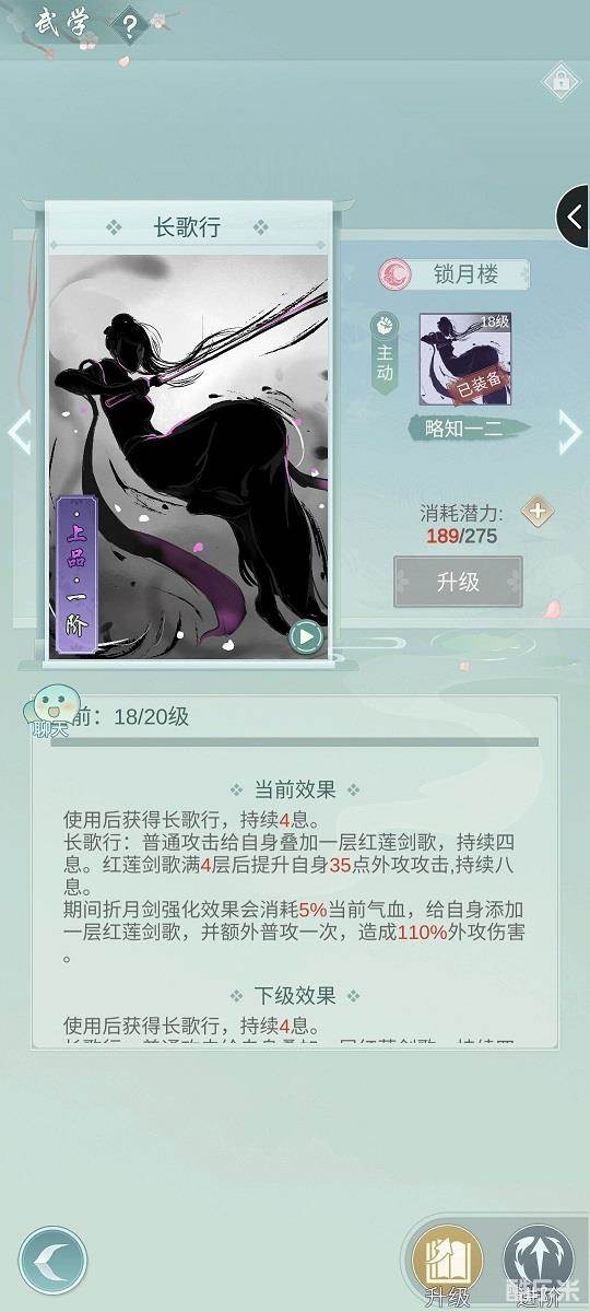我知道肯定有不少人玩锁月楼感觉自闭,但苦于没有其他门派的技能,这个主动武技的搭配,我也是被逼出来的,我其他的没潜力点升级了,也希望对其他玩锁月楼的有一点帮助。