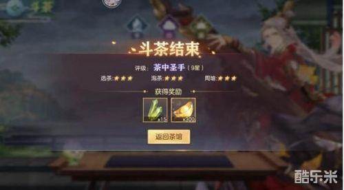 斗茶的评价分为三个部分,分别是选择的茶叶、泡茶的时间还有武将,各自都有评星。最完美的结果就是3个3星,得到总计9星的茶中圣手评价,奖励也是最为丰厚的。而在斗茶中取得高星级评价的技巧其实也是很简单的,注意在桌子左侧的茶灵的表情就可以了。