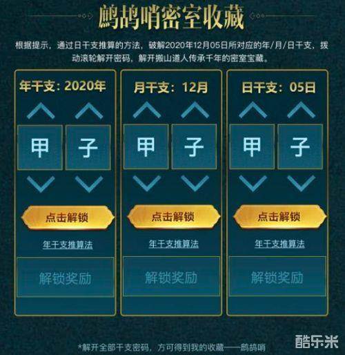玩家们需要在12月4日的时候解锁这个答案的,需要用日干支推算方法来推算12月5日对应的:庚子、己丑、壬午。还没有输入答案的玩家们快点去输入答案吧,玩家们就可以领取到丰富的奖励啦。