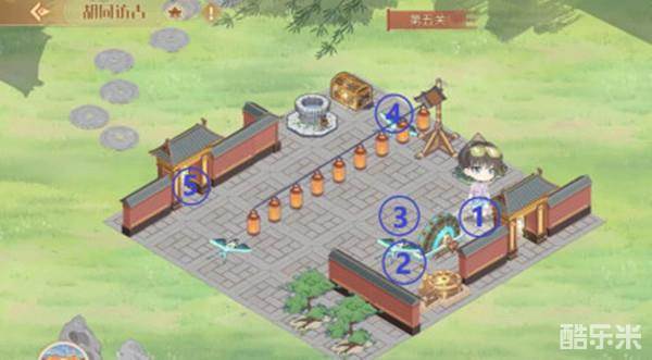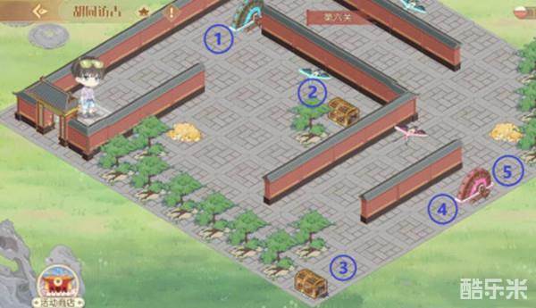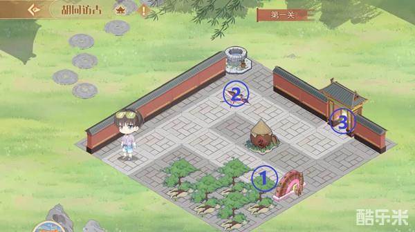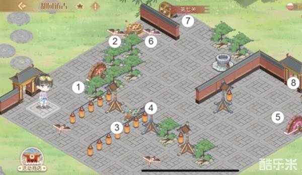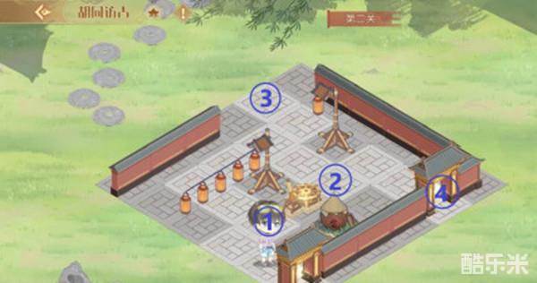 1.走到【1】处,按一下机关,下面挡路的灯笼会收起。
