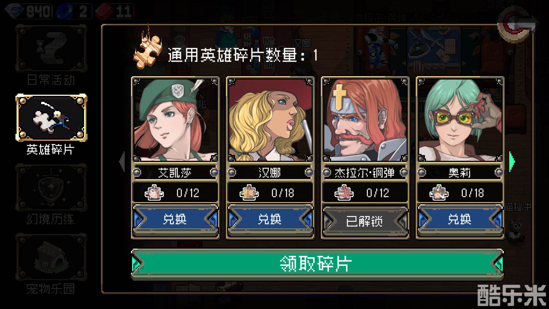 通用英雄碎片可以用来兑换任意角色。