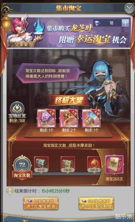 (这个就是氪金活动,总体来说这个氪金活动的奖励不是很好,本人抽了上次把奖池抽空了才拿到终极大奖,这个和扭蛋一样终极大奖最后10次必出,呵呵大家量力而行吧。小提示淘宝次数给的东西还是比较好的,要抽就抽空,不然就10次拼一下运气吧)