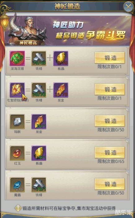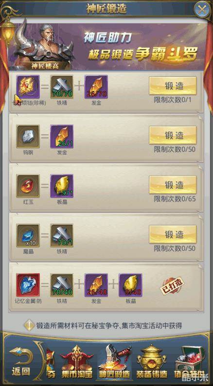 各部位铸造需要材料与效果截图请欣赏与参考
