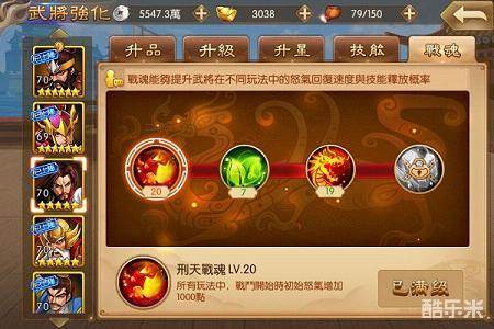 在材料和银两不充足的情况下,要注意各种战魂之间的取舍。刑天战魂增加初始怒气值,而句芒战魂则只会在竞技场中增加武将的生命值。