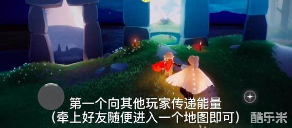 玩家向一位没有能量的好友传递能量,牵上好友随便一起进入其他地图