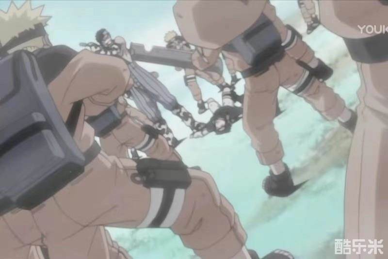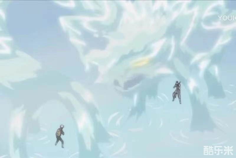 没有完,还有同样的情况,这次再不斩真的很吃惊,这时鸣人在空中扔出手里剑,手里剑向前飞去,眼看就要打中再不斩的眼睛,再不斩只好拔出水球中的手躲开飞镖,再不斩的眼角还是被飞镖伤到了,这样一来,卡卡西就解开了控制,再不斩旋转着飞镖就要向鸣人进攻,接招吧臭小子,只听见咔的一声,卡卡西挡住了飞镖,接下来就是力量的较量了,这种力量的较量持续了很久,卡卡西的手都流血了,最后卡卡西将飞镖弹飞了,两个人同时弹起,开始施展忍术,卡卡西的写轮眼工作着,两个人手上的动作是一样的也是同时的,召唤出水龙,两条水龙盘旋上升,最后撞到了一起,水花四溅,这时镜头一转,不远处的树上站着一个人。