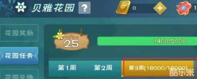 但要注意:每周是有任务经验上限的超出上限的话,完成任务就不加经验了哦。大家可以在花园任务界面,查看当周经验。