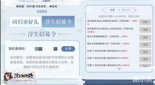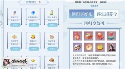 此外,针对回归的老玩家,《浮生为卿歌》还为阁下在游戏中准备了丰富的惊喜大礼。不仅让自己的亲友伙伴获得了积分,兑换自己想要的好礼,更有大量惊喜助力,让阁下的浮生之旅更加简单有趣。