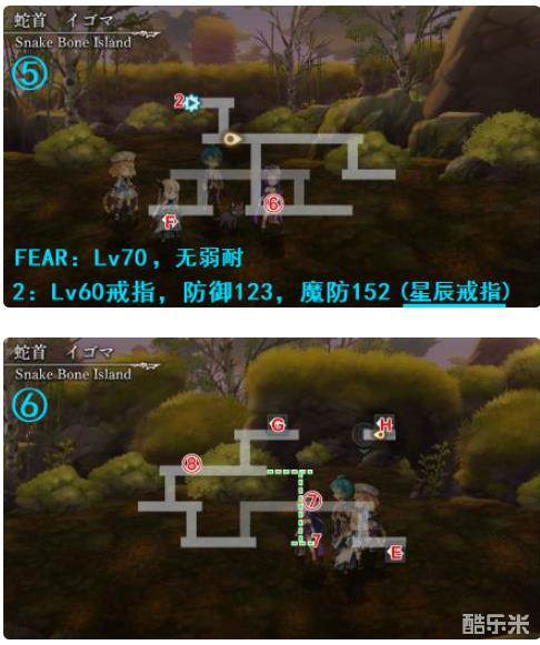 宝箱:1~7,其中2是Lv60星辰戒指,防御123,魔防152,4是Lv60黑百合项链III,防御135,魔防122,其他都是素材和金币。