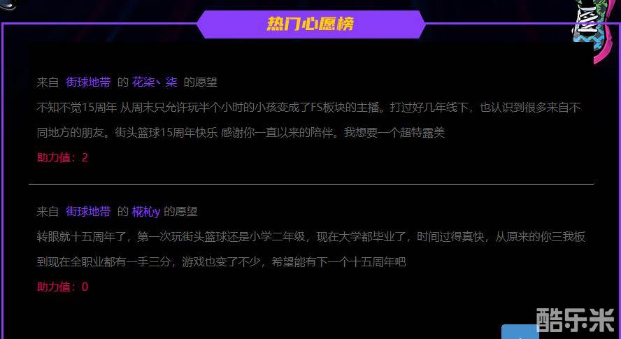 十五年的相伴,街头篮球因为你的热爱而璀璨。不负遇见,未来有你;这一次,只想你快乐。许下你的15周年愿望,我们将在12月10日,随机抽取共15名玩家帮TA实现愿望。