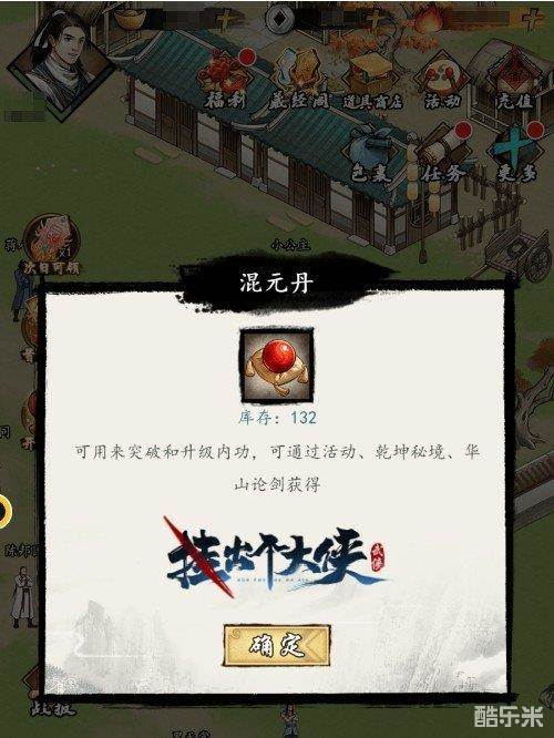 4、【混元丹】——可用来突破和升级内功——可通过进阶目标、每日任务、华山论剑、乾坤秘境、玄铁令、商店获取