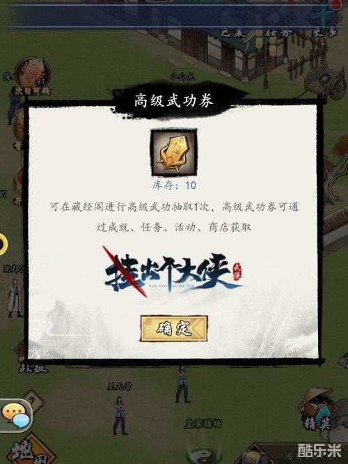 9、【高级武功券】——可在藏经阁进行高级武功抽取1次——可通过进阶目标、成就、签到、侠客传、日常任务、周任务、通天塔、七日登录、任务酒馆、玄铁令、章节通关、活动获取