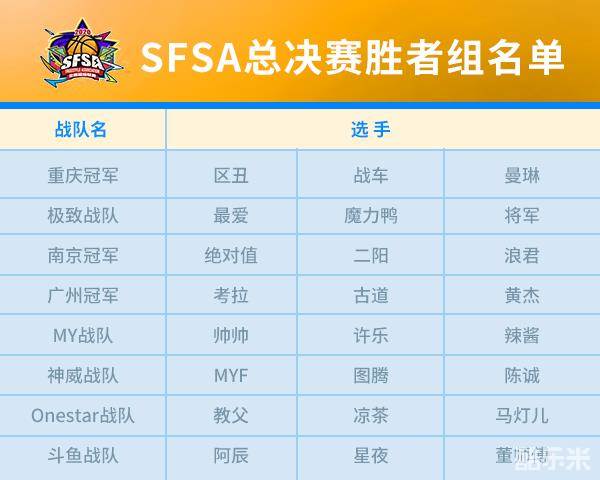 今年的SFSA全国超级联赛总决赛采用双败赛制。8支队伍胜者组队,8支败者组队伍。胜者组中有FSPL职业联赛冠军斗鱼战队,绝对值二阳浪君作为南京冠军同样拥有冲击冠军的实力,胜者组8支战队中有5支来自四区,可见四区的整体实力相当强大。当前版本中几支最强的组合都在胜者组中,势必是一场大战。