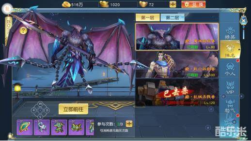 排名BOSS 每天可以进入三次,三次过后可以花费绑定元宝进入,根据输出的排名发放奖励,是获取过渡的神装的最佳场所。