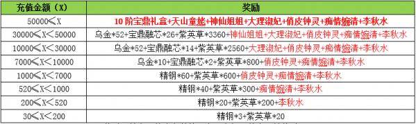 活动期间内,玩家累计充值金额达到特定要求,即可获得对应奖励。