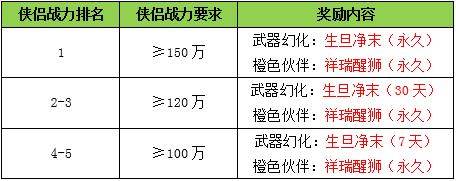 活动期间内拥有夫妻关系,且达到特定战力要求即可获得对应奖励。