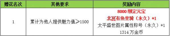 游戏内风云榜-江湖俊杰榜-魅力榜中榜单前5名,且达到最低魅力值要求的玩家将获得如下对应奖励:(所有奖励绑定)。