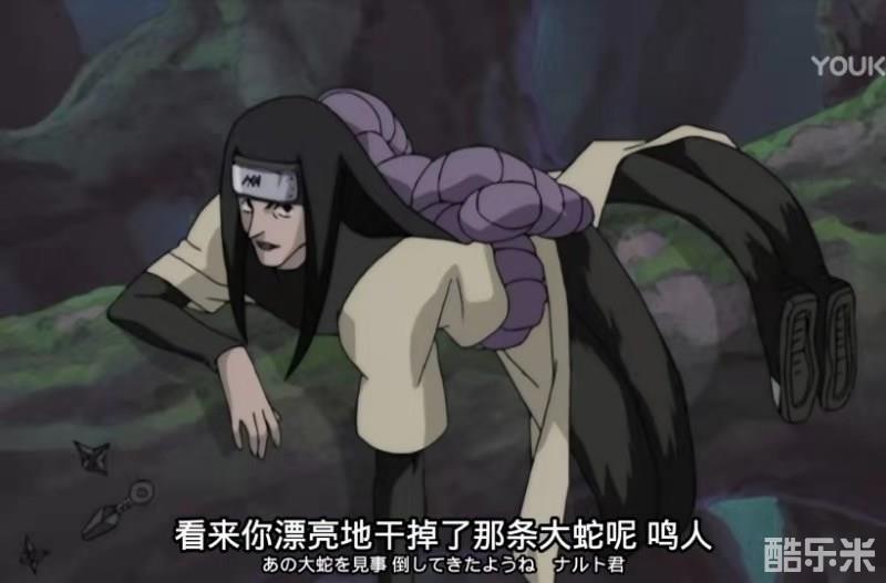 鸣人让佐助退后,他去战斗,那位忍者站起来,表示要同鸣人较量一下,只见他在手腕的图案上画了一道,鸣人手握手里剑冲了过去!只见那个长发忍者快速结印,紧接着一阵狂风吹过吹起了鸣人,这一招叫通灵之术,召唤出了一条巨大的蛇,这条蛇吐着舌头,砸向空中的鸣人,鸣人躲开了。