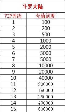 斗罗大陆h5vip等级充值表: