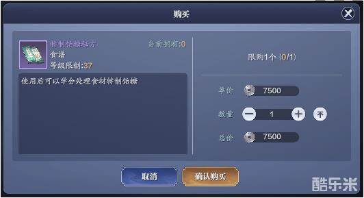 1、首先需要玩家的厨师身份等级达到26级以上,然后在【市集】-【身份商店】-【食谱】中就可以购买特制饴糖的制作秘方,售价是7500碎银